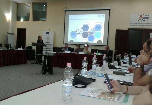 11-12 июля делегация Полесского государственного университета приняла участие в семинаре ”Towards EU–EaP clusters collaboration“, проходившем в Тбилиси (Грузия) в рамках проекта EaP PLUS (Eastern Partnership). На семинаре были представлены отчеты кластеров из Украины, Грузии, Молдовы, Армении, Беларуси, получивших грантовую  поддержку ЕС. В состав делегации от ПолесГУ вошли Золотарева Ольга,  проректор по учебной работе, Хмель Ольга, декан факультета дополнительного образования. Со стороны ЕС в семинаре приняли участие Светлана Клесова (Svetlana Klessova директор, inno TSD), Люция Сил (Lucia Seel, эксперт по кластерам от ЕССР, European Cluster Collaboration Platform), Фабио Руссо (Fabio Russo, глава офиса по торговле, инвестициям и инновациям программы UNIDO Cluster) и др.