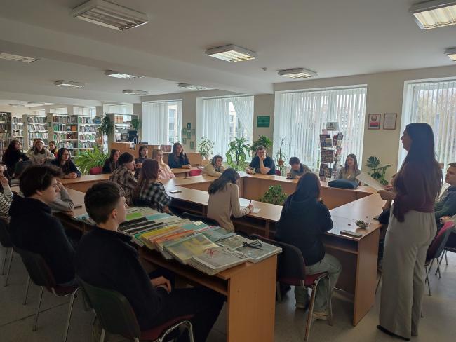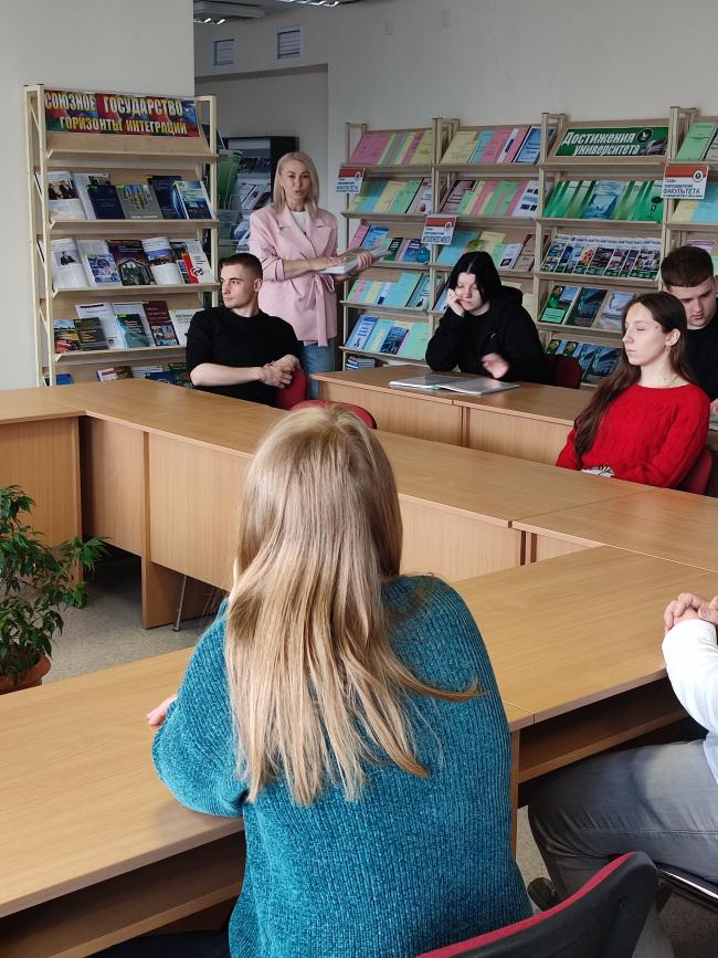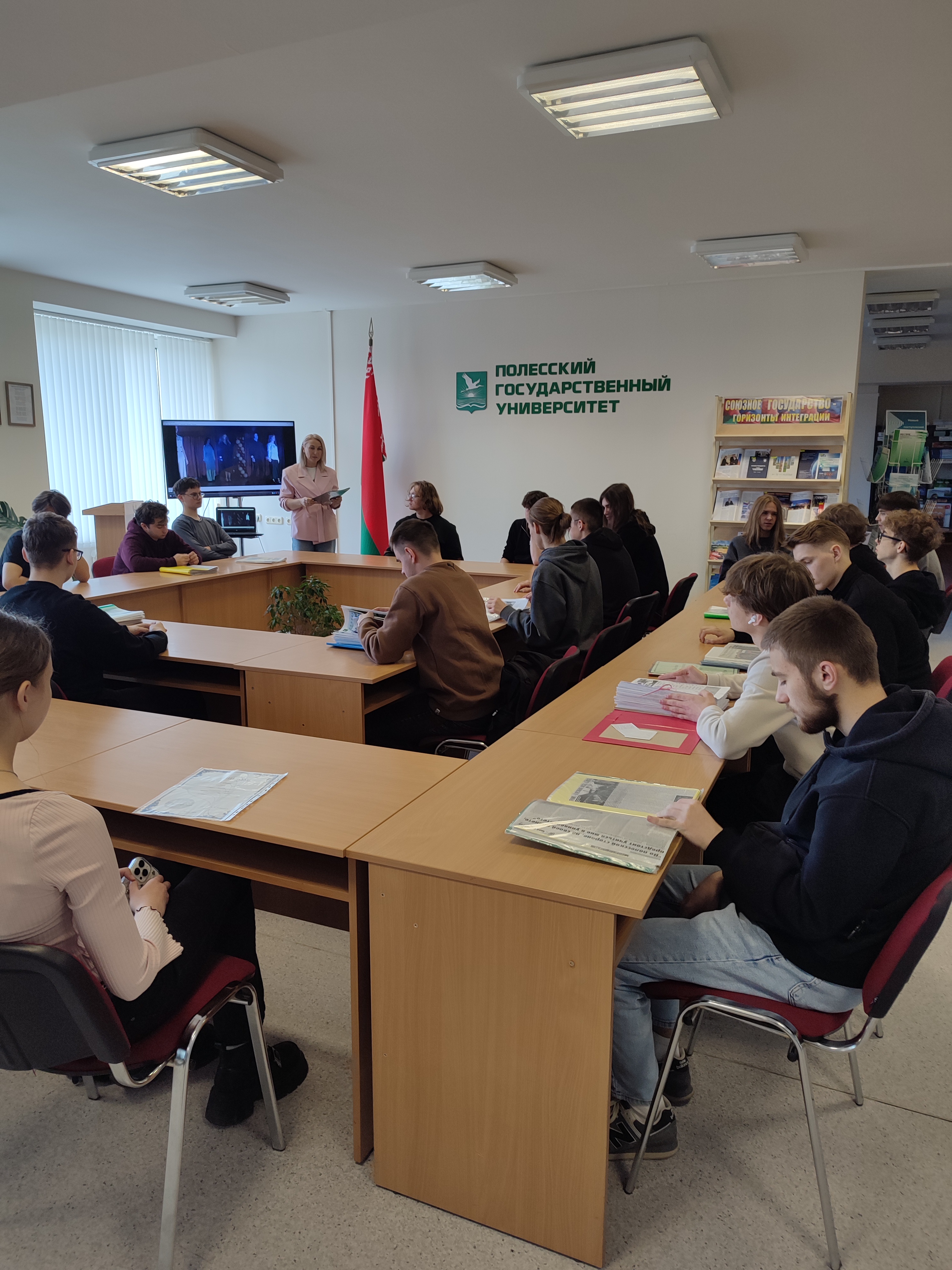 В читальном зале библиотеки (ул. Пушкина, 4, ауд. 3332) прошли информационные часы с группами 25ИТ-4, 25БТ-2, 22БТ-2, посвященные 20-летнему юбилею Полесского государственного университета. Ведущий библиотекарь А.К. Кучинская познакомила студентов с книжной выставкой «Достижения университета», печатными материалами «ПолесГУ в печати», собранными с 2006 года, газетой «Унивестник». Студенты посмотрели видеоролик об университете. Все это создало атмосферу единства и общей причастности к истории вуза.