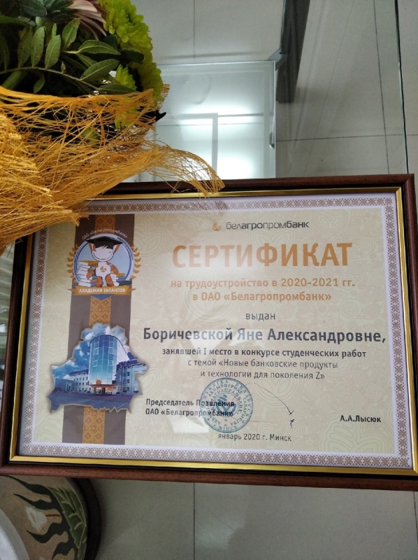 Полесский государственный университет выражает благодарность ОАО ”Белагропромбанк“ за признание результатов работы студентов факультета банковского дела в рамках проведенного конкурса!