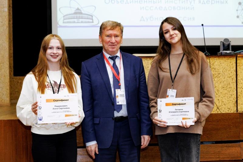 - Елизавета Литвина, Полесский государственный университет. «Особенно важным опытом стал хакатон по аналитике больших данных — это был мой первый такой формат работы в роли аналитика, и он показал, насколько живые практические задачи и командная работа соответствуют моим профессиональным интересам. Школа оставила очень приятное и мотивирующее впечатление: сочетание профессионализма лекторов и искренней доброжелательности организаторов создавало атмосферу, в которой было легко учиться и задавать вопросы. Особенно запомнилась лекция Юрия Цолаковича Оганесяна. Я далека от химии и никогда особо не увлекалась этой областью, но он сумел доступно и понятно представить материал о тяжеловесных элементах таблицы Менделеева, что действительно заинтересовало и оставило чувство уважения к уровню исследований, которые ведутся в институте».