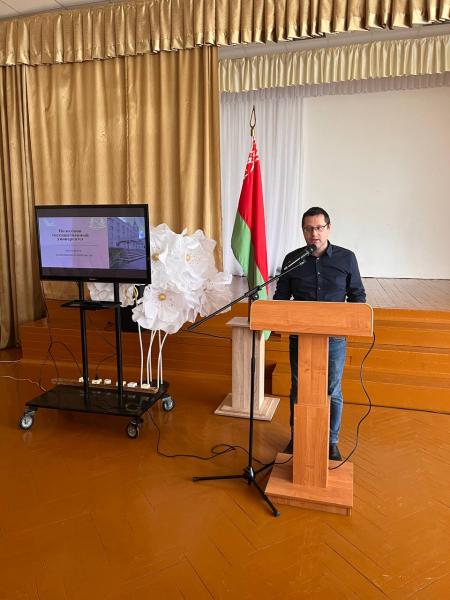 30 марта 2026 года старший преподаватель кафедры маркетинга и международного менеджмента Демьянов Сергей Александрович посетил с профориентационными целями СШ№9 г. Пинска.