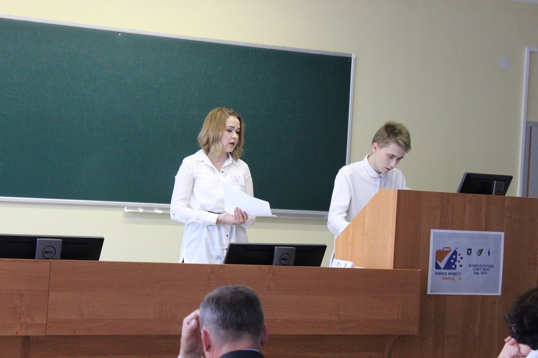 На юбилейном конкурсе стартап-проектов «Пинск Инвест Уикенд - 10» были представлены 12 инновационных проектов как в традиционных для данного мероприятия направлениях - «биотехнология», «коммерческие проекты», «социальные проекты», так и новинка юбилейного форума – категория «старт», в которой экспертам были предложены два проекта учащихся лицея ПолесГУ.
