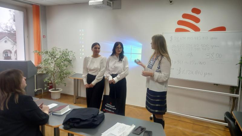 Представители ПолесГУ: заведующий кафедрой банкинга и финансовых рынков Давыдова Наталья Леонтьевна; старший преподаватель кафедры банкинга и финансовых рынков Сергеюк Валентина Степановна; старший преподаватель кафедры банкинга и финансовых рынков Лопух Юлия Ивановна.