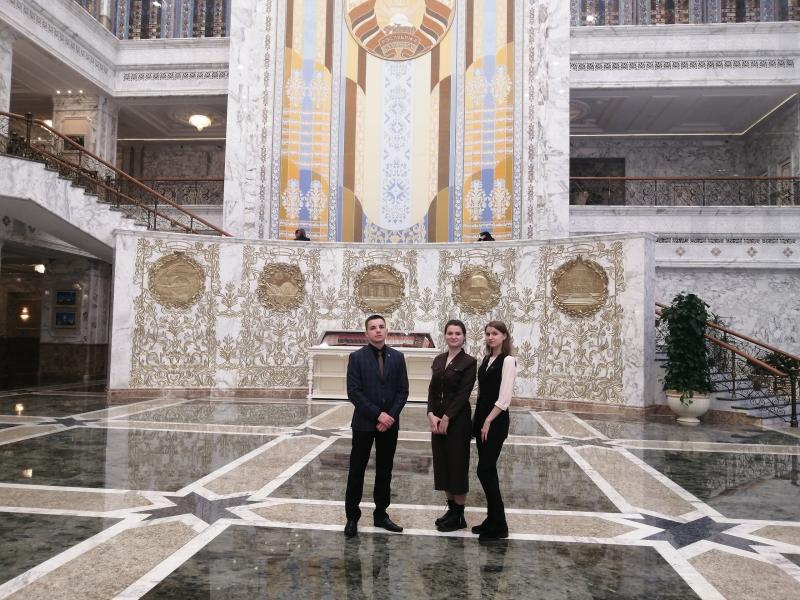 Сегодня у делегации из Брестской области насыщенная программа. Следующей точкой на карте столицы стал Дворец Независимости, где для ребят провели экскурсию.