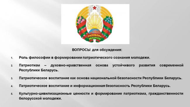 Студенты факультета экономики и финансов с интересом обсуждали актуальные вопросы, связанные с духовно-нравственными основами устойчивого развития современной Республики Беларусь и воспитанием патриотизма и гражданственности белорусской молодежи.