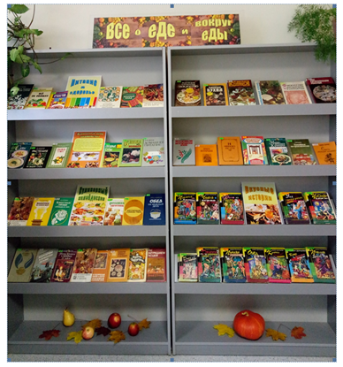 На выставке представлены издания, которые в равной степени подойдут как тем, кто только начал знакомиться с кулинарным искусством, так и настоящим мастерам в приготовлении еды. Это литература о здоровом питании, об основных продуктах питания, их пищевых и некоторых лечебных свойствах. Каждый читатель сможет найти для себя какой-то новый, интересный рецепт. Даются рекомендации по приготовлению еды, предлагаются примерные однодневные меню для всей семьи. Рубрика  «Кулинарный калейдоскоп» знакомит с книгами о своеобразии национальных блюд, предлагает  вегетарианские рецепты, рассказывает о сервировке стола. Подборка художественных произведений собрана в рубрике «Вкусные истории».