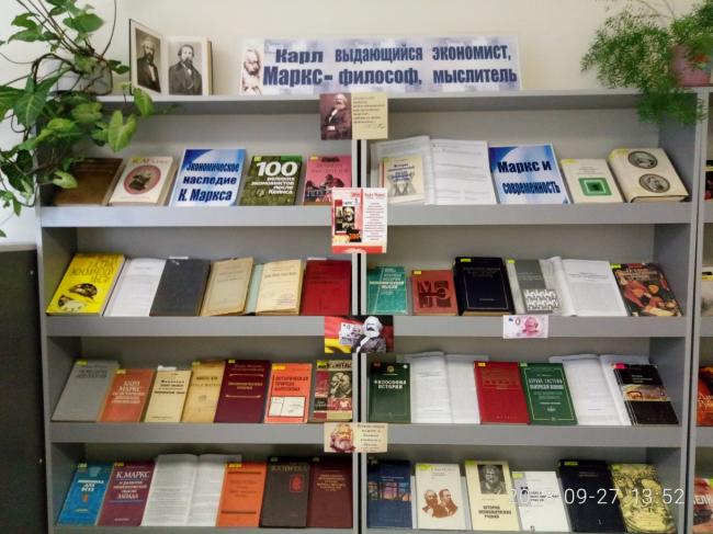 На абонементе научной и художественной литературы (учебный корпус№3, ауд. 3221) экспонируется книжная выставка «Карл Маркс –экономист, философ, мыслитель», посвященная 200-летию со дня рождения немецкого экономиста и общественного деятеля.