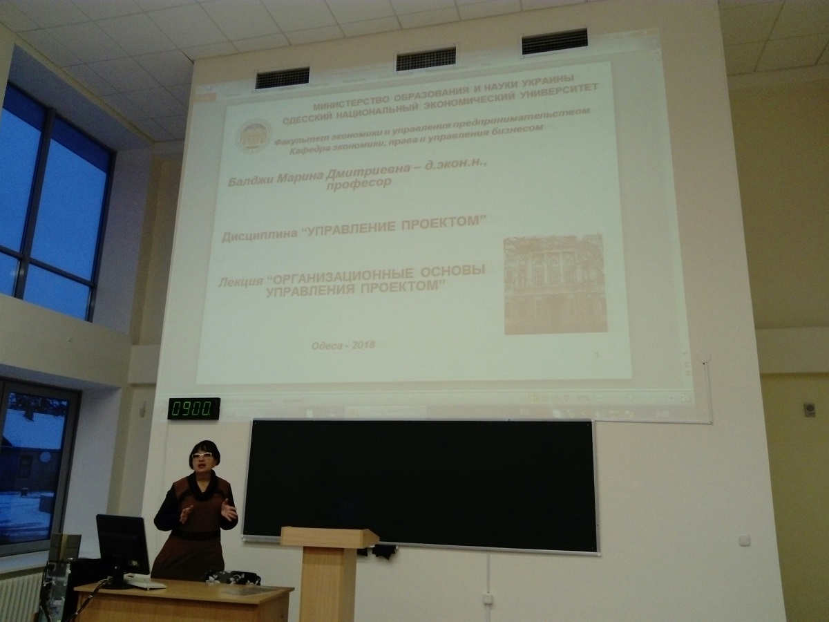 Лекция доктора экономических наук, профессора Балджи Марины Дмитриевны была посвящена ключевым факторам в управлении проектной деятельностью фирмы. Гейко Людмила Михайловна, кандидат экономических наук, доцент рассказала студентам о государственной политике Украины в области формирования и использования государственного бюджета и особенностях налогообложения.