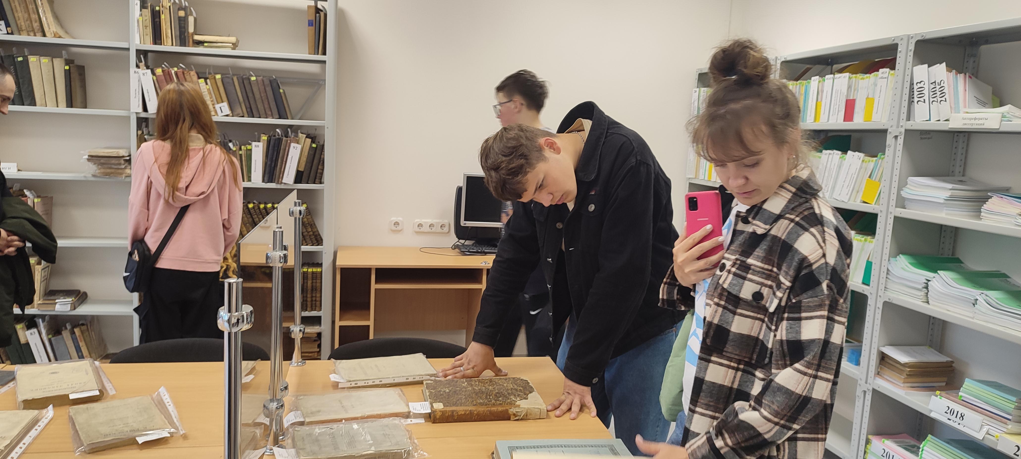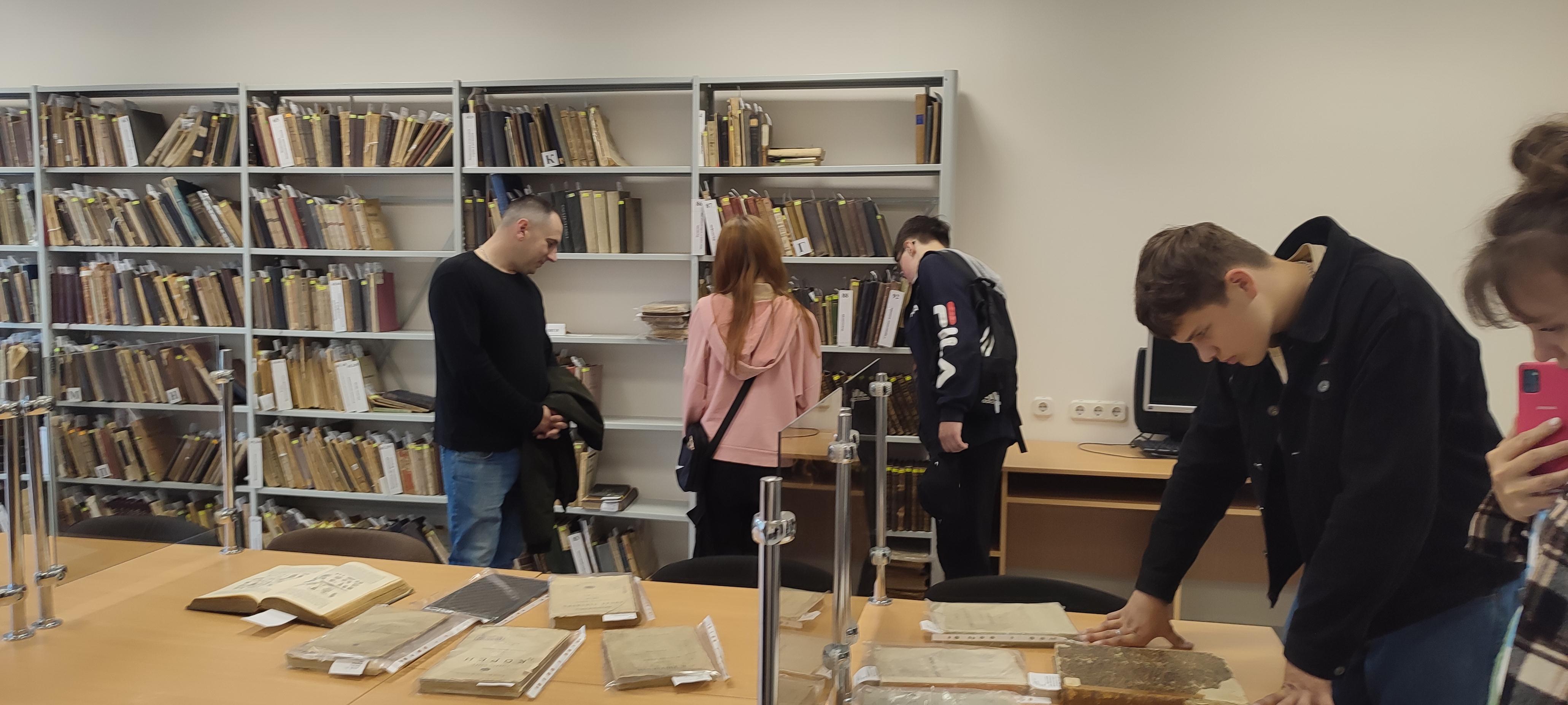 Ведущий библиотекарь Кучинская А.К. провела ознакомительную экскурсию по библиотеке. Ребятам показали читальные залы, абонементы учебной и научной и художественной литературы. В зале электронных ресурсов рассказали об информационных ресурсах и услугах, которые библиотека предоставляет своим пользователям. Особый интерес вызвал у школьников фонд редкой книги, издания дореволюционных петербургских и московских типографий.
