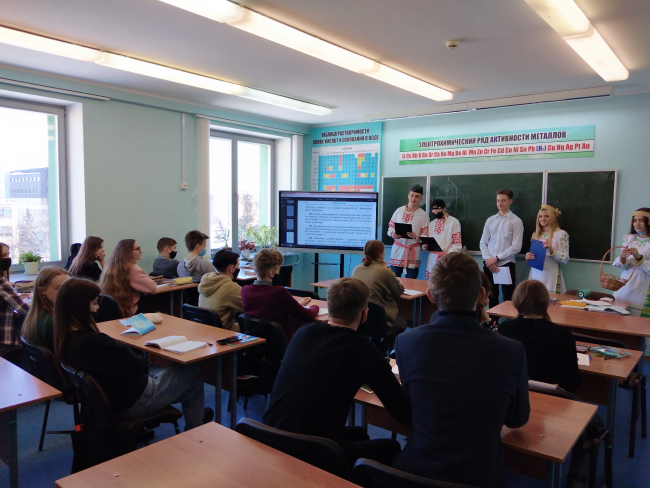 На працягу дня арганізатары свята, вучні 10 «Г» класа, вiншавалі ўсіх ліцэістаў, зарашалі прыняць удзел у конкурсах «Знаўцы беларускага фальклору», «Гістарычнае падарожжа ў літаратуру», «Хто такі?», «Імёны і прозвішчы» і падтрымлівалі добры настрой ліцэістаў і настаўнікаў.