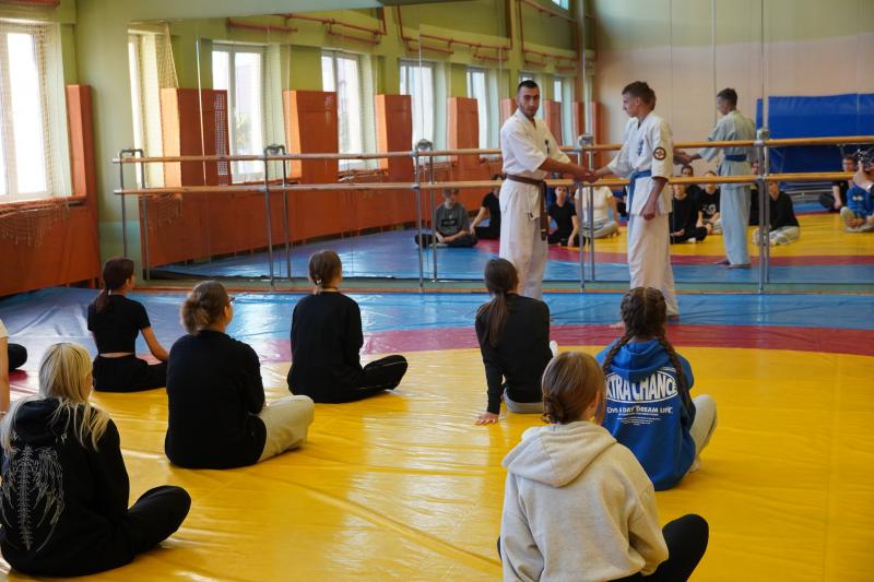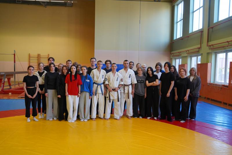 Практическая часть включала в себя отработку базовых приемов освобождения от захватов, ударов и других агрессивных действий. Студентам продемонстрировал техники защиты, адаптированные для людей с разным уровнем физической подготовки.
