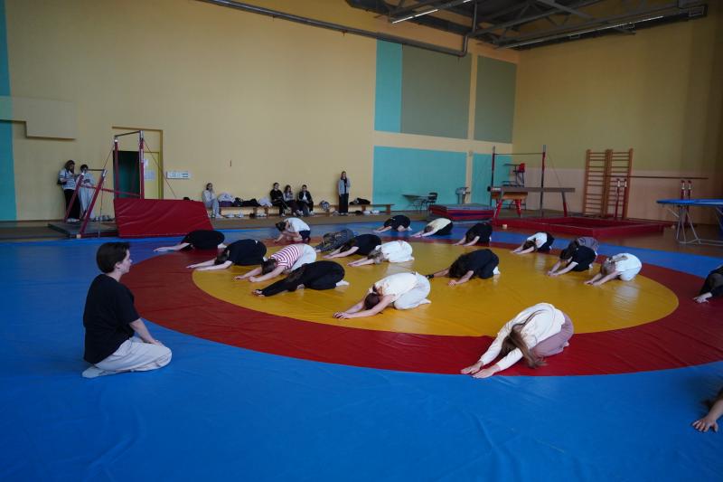 Участники мастер-класса выполняли упражнения, для развития гибкости, силы, координации и способности двигаться без усилий.