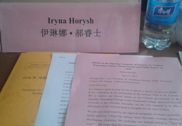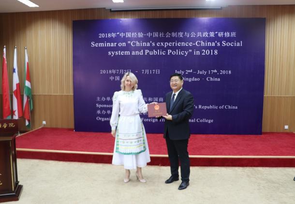 Старший преподаватель кафедры историко-культурного наследия Гориш Ирина Владимировна приняла участие в семинаре «Опыт Китая: социальная система и общественная политика» по приглашению Министерства коммерции КНР (г. Циндао, КНР). Организатором обучающего мероприятия выступил Шаньдунский колледж внешней торговли. В течение 2 недель на базе учебно-тренировочного центра в городе Циндао представители 16 стран знакомились с опытом Китайской Народной Республики в социально-экономической сфере.