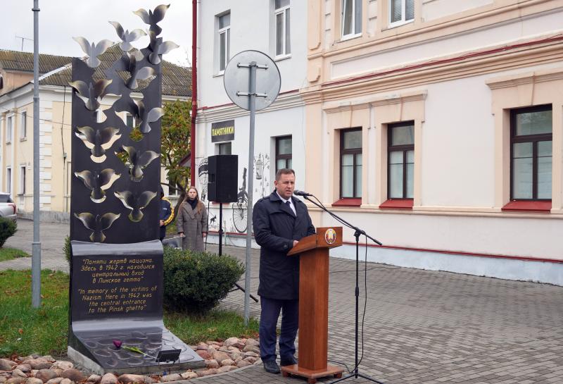 К участникам митинга обратились заместитель председателя горисполкома Николай Викторович Новак, председатель еврейского культурно-просветительского общества имени Хаима Вейцмана Ефим Маратович Дурнопейко, доцент кафедры социально-гуманитарных наук ПолесГУ Ирина Эдуардовна Еленская.