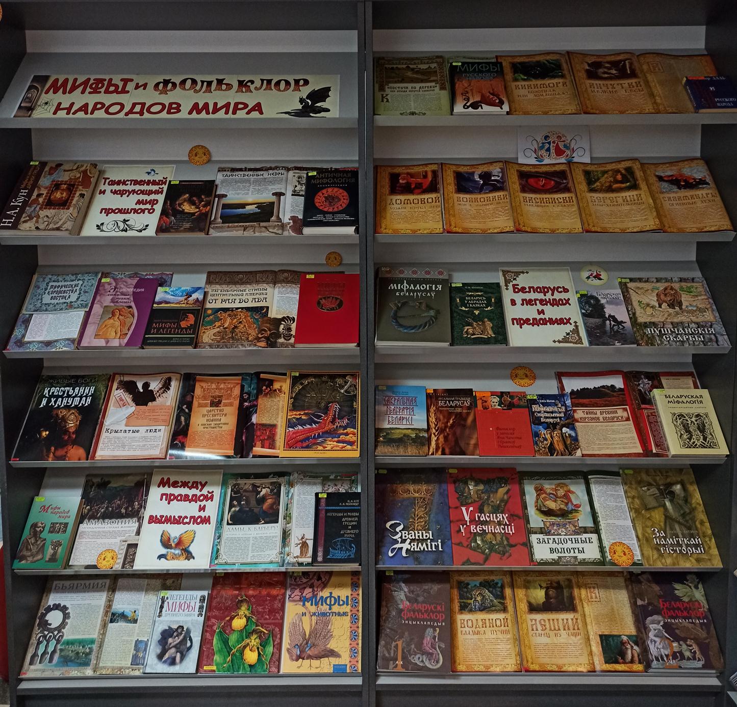 В читальном зале библиотеки (учебный корпус №1) оформлена книжно-журнальная выставка «Мифы и фольклор народов мира». На выставке представлена литература, посвященная мифам и легендам древней Греции, Рима, Египта, Индии, ирландской, скандинавской, славянской и русской мифологии. В разделе «Беларусь в легендах и преданиях» собраны интересные сведения о героях белорусских легенд, мифов, преданий, сказок.
