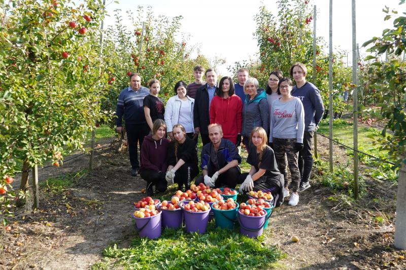 18 октября вместе со студентами к сбору урожая яблок присоединились руководство и сотрудники университета.