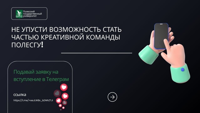 Заявки принимаются по ссылке в Telegram-канале ПолесГУ (t.me/+eeJLW8x_b...)