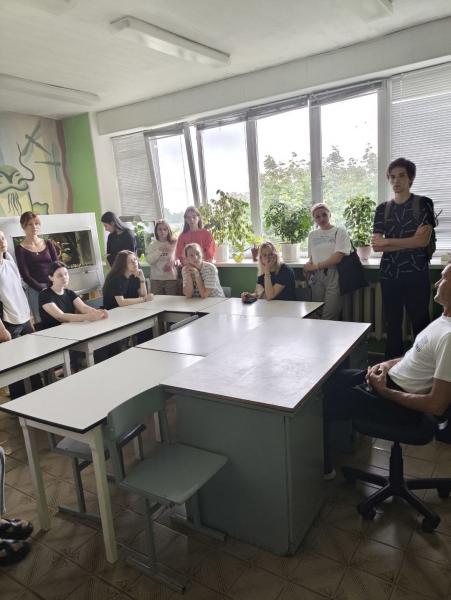 Студенты группы 22БТ-1 биотехнологического факультета в рамках учебной научно-исследовательской практики под руководством старшего преподавателя кафедры биотехнологии Приловской Екатерины Игоревны и доцента кафедры Шашко Александра Викторовича провели выездное занятие в ГУО "Центр дополнительного образования детей и молодежи г. Пинска", где посетили научное общество учащихся "Гидробиология".