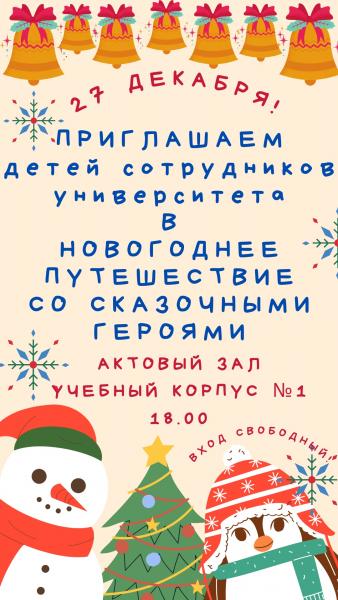 Приглашаем детей сотрудников и преподавателей ПолесГУ на новогоднее представление, которое состоится 27 декабря 2023 года в 18.00 в актовом зале учебного корпуса №1.