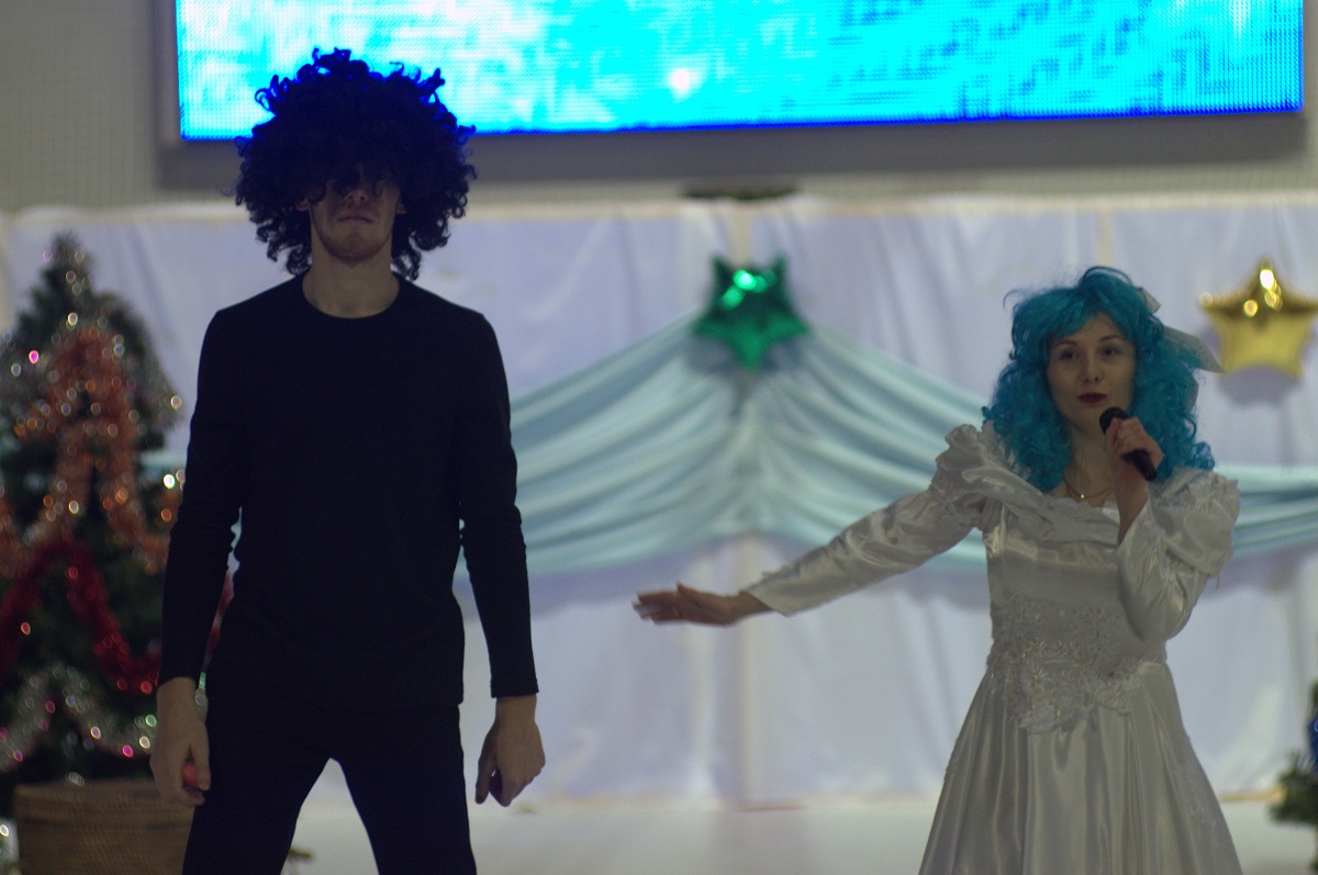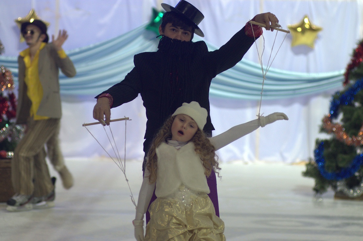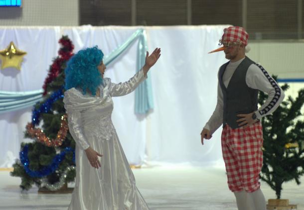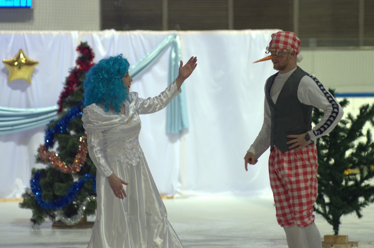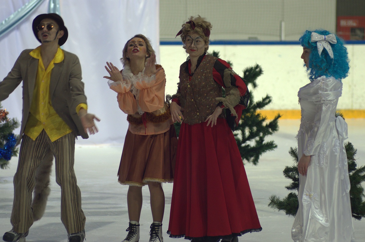В заключительной части новогоднего утренника студенты университета удивляли детей волшебным представлением на льду. Были показаны различные сказочные персонажи, которые не только радовали глаз, но наполняли зал праздничным настроением. Среди персонажей новогоднего спектакля можно было увидеть Буратино, Мальвину, Карабаса-Барабаса, Кота Базилио и множество других не менее интересных персонажей. Дети и взрослые были очарованы сложным фигурным мастерством и актёрской игрой выступающих. Действительно, шоу получилось ярким и красивым. Как во всех добрых сказках, добро победило зло, и аудитория одарила героев бурными овациями. По окончанию спектакля предоставлялась возможность не только сфотографироваться с любимыми персонажами, но и покататься с ними на льду.