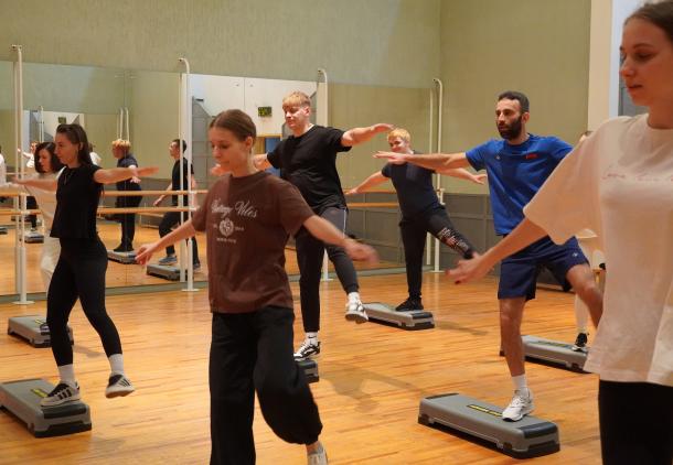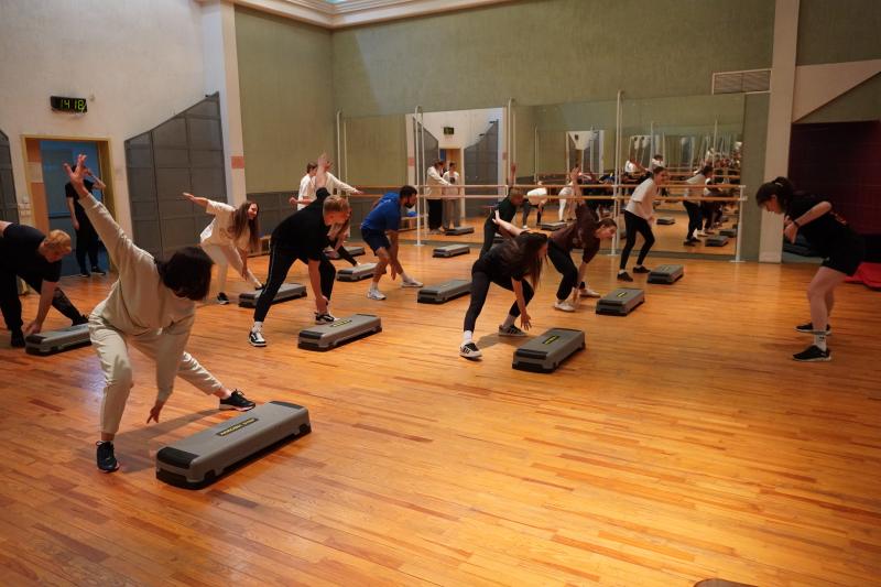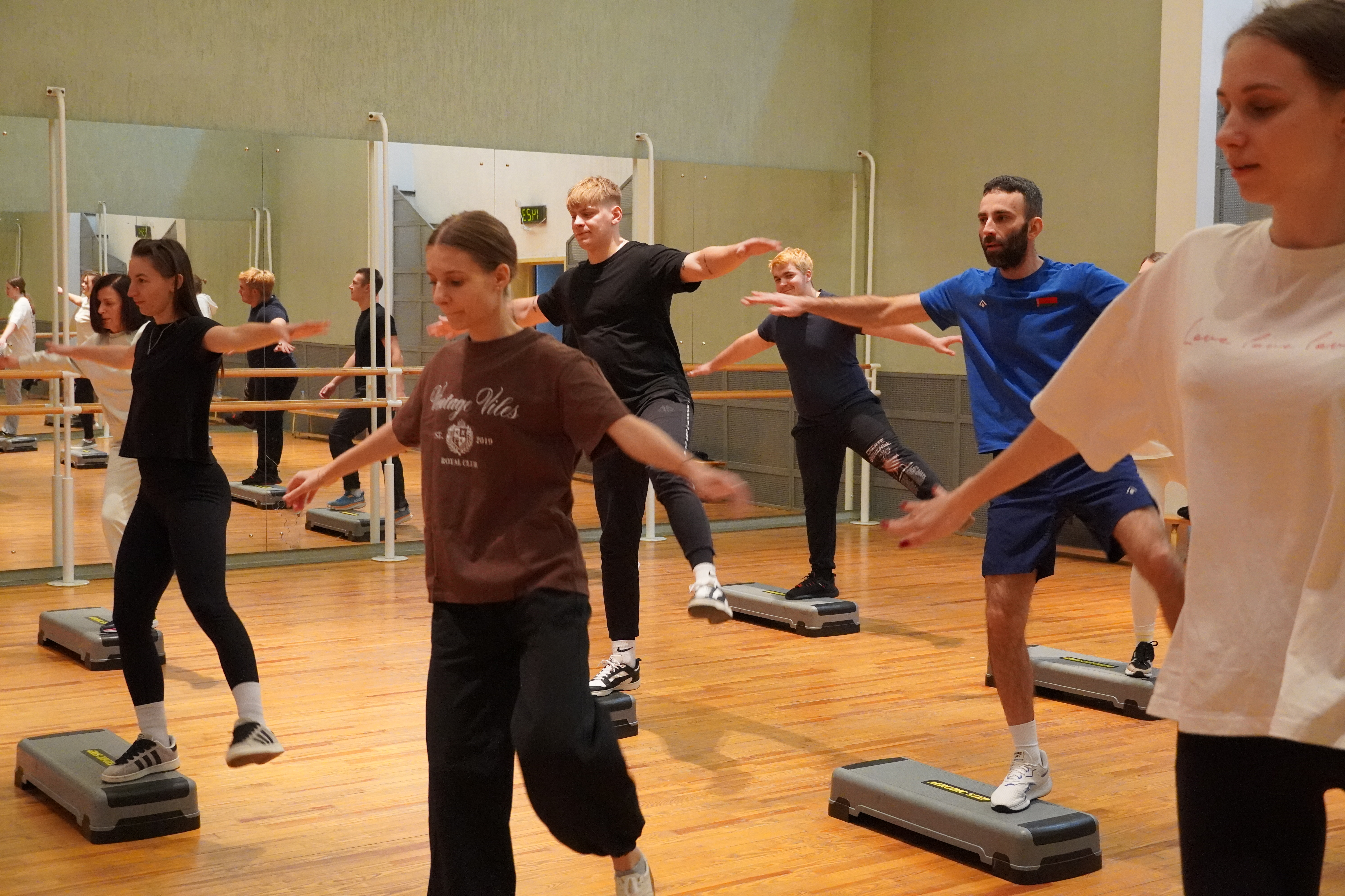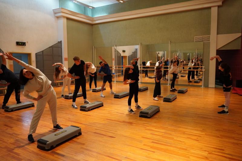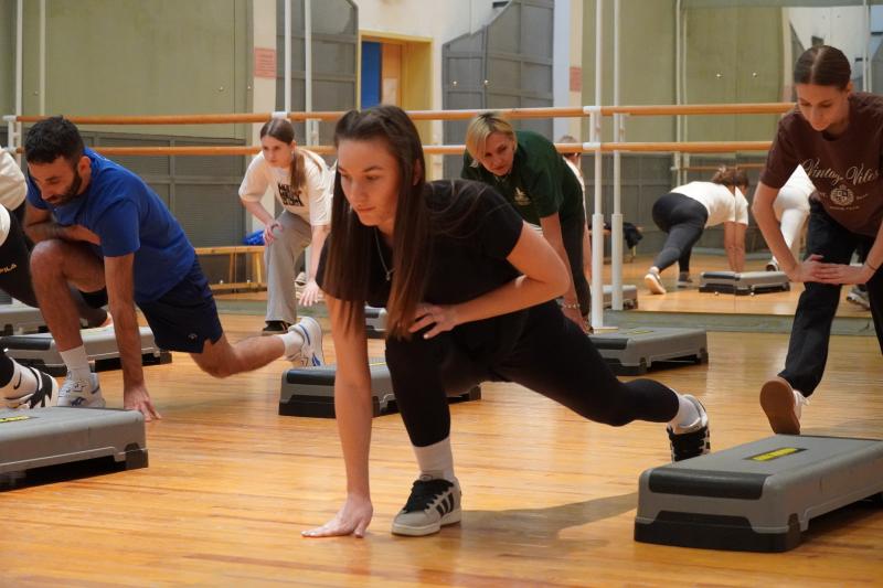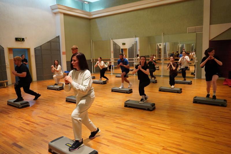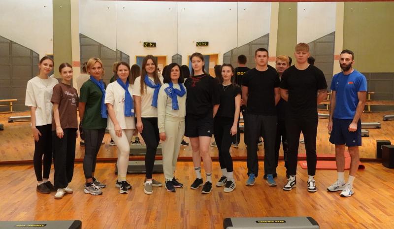 Активное участие в программе приняла студентка ФОЗОЖ Анастасия Журавлёва, которая провела динамичный фитнес‑марафон в направлении «Табата».