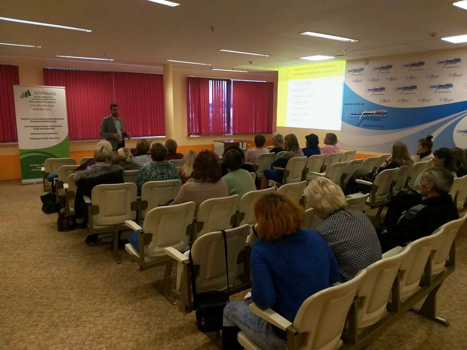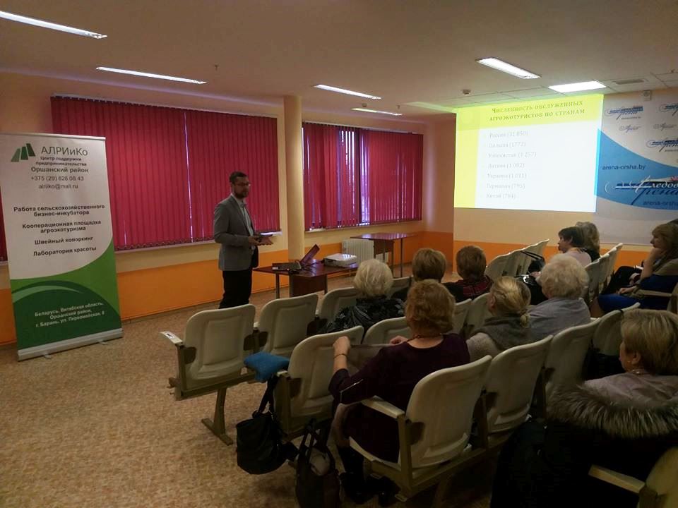 28 ноября 2019 г. старший преподаватель кафедры историко-культурного наследия Демьянов Сергей Александрович в качестве приглашенного эксперта по туризму выступал на семинаре в рамках Проекта “Улучшение доступа к финансовым ресурсам сельского населения Беларуси», реализуемого Республиканским микрофинансовым центром (РМЦ). Мероприятие состоялось в пресс-центре Ледовой арены в городе Орша, организатором выступил Центр поддержки предпринимательства ООО «АЛРИиКо». В докладе освещались вопросы, связанные с созданием собственного агротуристического бизнеса, привлечением туристических групп, расширением деятельности крестьянско-фермерских хозяйств в агротуристическом бизнесе и формированием кооперационных площадок агроэкотуризма.