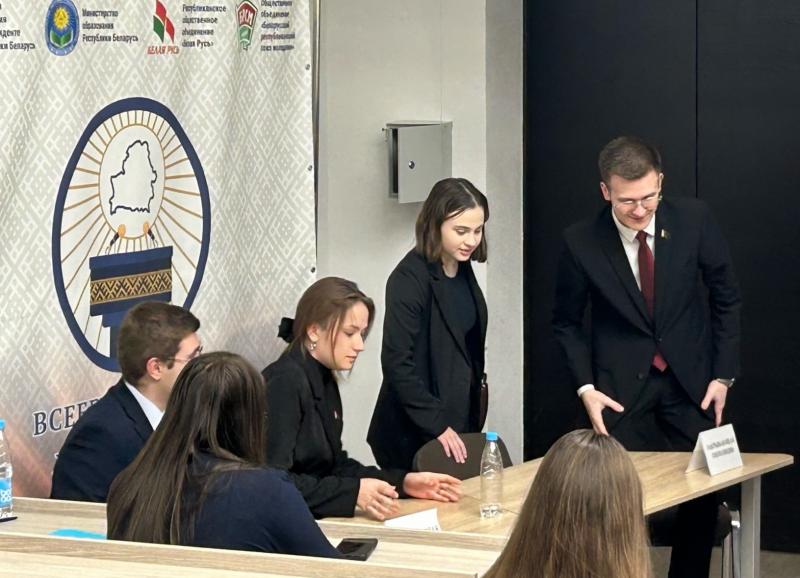 В рамках подготовки к очередному сезону проводится обучающий семинар для учреждений высшего образования, в котором принимают участие начальник отдела по идеологической и воспитательной работе Ярович Оксана Николаевна, студенты инженерного факультета Мемех Максим, Кононович Арина и студентка факультета экономики и финансов Василюк Дарья.