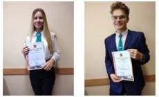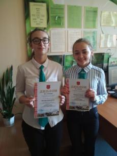 Мартынюк Валерия, учащаяся 10 «А» класса, завоевала диплом I степени по географии за работу «Оптимизация административно-территориального деления Республики Беларусь» (руководитель – Романов П.Д.). Колб Ростислав, учащийся 11 «А» класса, – диплом III степени по математике за работу «Применение теоремы Менелая к решению задач». (руководитель – Касперович Т.Н.)