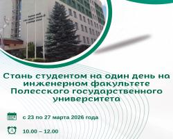 С 23 по 27 марта 2026 года приглашаем тебя в Полесский государственный университет на инженерный факультет на проект «Стань студентом на один день»!