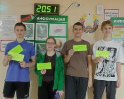 8 декабря 2022 г. Мартысюк Иван, Чернова Дарья, Крупко Кирилл, Остапчук Илья, учащиеся 10 «В» специализированного по спорту класса, результативно выступили на первенстве города Пинска на гребных тренажерах «Концепт» по гребле академической.