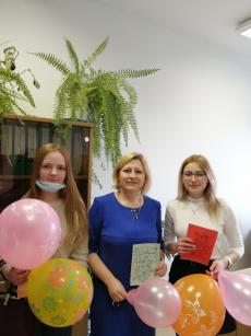 Преподавателям и сотрудникам прекрасного пола наши волонтёры подарили шарики и открытки.