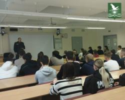 28 ноября в Полесском государственном университете состоялась встреча студентов с начальником отдела по наркоконтролю и противодействию торговле людьми Октябрьского РУВД г. Минска Валюшко Кириллом Владимировичем на тему: "Противодействие незаконному обороту наркотических средств и психотропных веществ, современная проблематика потребления и распространения наркотиков." В диалоге принимала участие проректор по идеологической и воспитательной работе Хмель Ольга Анатольевна.