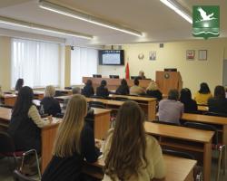 На факультете организации здорового образа жизни состоялась встреча студентов первого курса с участковым инспектором ИДН Пинского ГОВД старшим лейтенантом милиции Ходаковской Ириной Леонидовной.