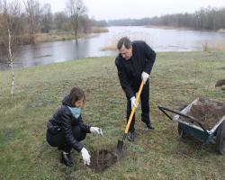Ректор Полесского государственного университета Дунай Валерий Иванович вместе с сотрудниками административного корпуса высадили деревья и кустарники на территории 2 гребной базы университета.