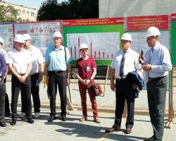 Открыл выездное заседание на строительной площадке Стройтреста N 2 по ул.Рокоссовского Первый заместитель председателя Пинского горисполкома Самолазов М.Н., который отметил актуальность и большое значение мониторинга вопросов обеспечения безопасности в учреждениях и на предприятиях города. Депутаты ознакомились с особенностями мероприятий по предупреждению производственного травматизма при производстве строительных и строительно-монтажных работ в городе, поделились опытом в совершенствовании системы управления охраны труда.
