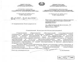 Учреждение образования "Белорусский университет физической культуры" выражает благодарность члену совета по защите диссертаций, проректору по научной работе, доктору медицинских наук КРУЧИНСКОМУ Николаю Генриховичу