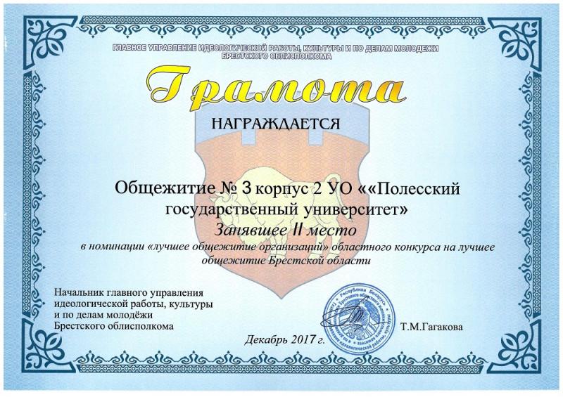 Общежитие №3 (корпус №2) Полесского государственного университета награждено