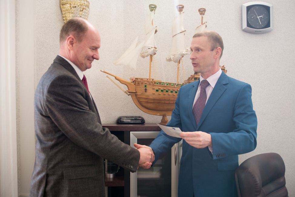 7 апреля, в рамках 10-летия Полесского государственного университета, прошла встреча ректора университета Шебеко Константина Константиновича и председателя профсоюзного комитета Полесского государственного комитета Пигаля Павла Борисовича с Холяво Сергеем Фадеевичем, председателем Республиканского Комитета Профсоюза работников государственных и других учреждений;