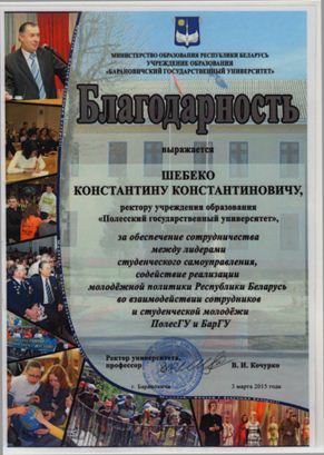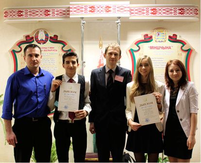 Сотрудники и студенты биотехнологического факультета ПолесГУ поздравляют учащегося Гимназии № 5 г. Минска Германа Войтовича, а также студентов 3 курса Алексея Скакуна, Максима Страдомского, Юлию Елизарову и Екатерину Щербач с успешным представлением результатов исследований 28 февраля 2015 года на XIX Республиканском конкурсе работ исследовательского характера в городе Минске.