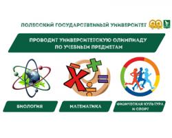 Предлагаем Вам принять участие в Университетской олимпиаде по учебным предметам: «Биология», «Математика», «Физическая культура и спорт», победители которой (дипломы I, II, III степени заключительного этапа) имеют право на зачисление в учреждение высшего образования «Полесский государственный университет».