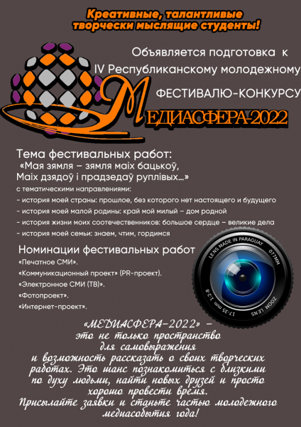 Объявляется подготовка к IV Республиканскому молодежному фестивалю-конкурсу "Медиасфера-2022"