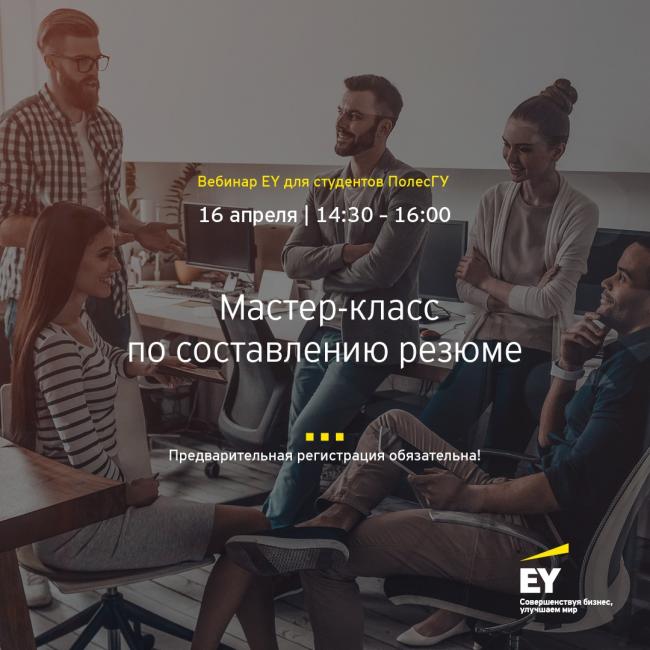 EY (Эрнст энд Янг), международная аудиторско-консалтинговая компания проведет онлайн мастер-класс по составлению резюме для студентов ПолесГУ.