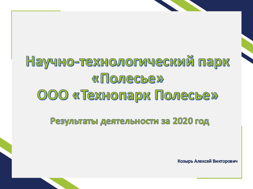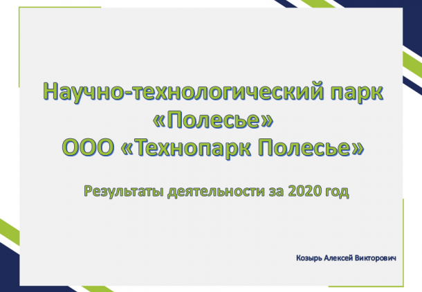 Результаты работы Технопарка представляли директор ООО «Технопарк Полесье» Козырь А.В. и проректор по научной работе Кручинский Н.Г. Все доведенные показатели на 2020 год были успешно выполнены, проделанная работа была отмечена экспертами. По итогам заседания комиссии деятельность ООО «Технопарк Полесье» была признана инновационной и соответствующей требованию законодательства.