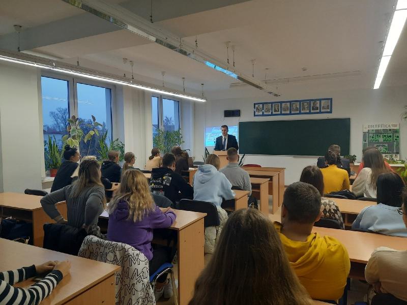 3 ноября в Полесском государственном университете состоялся открытый диалог "Сила Закона". Гостями мероприятия стали: первый секретарь Пинского ГК ОО «БРСМ» Масляк Виктор Анатольевич и заместитель начальника Пинского отдела Департамента охраны МВД Республики Беларусь по идеологической работе и кадровому обеспечению Брель Андрей Юрьевич.