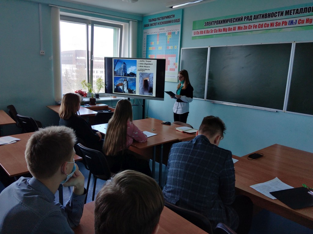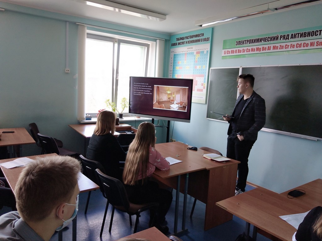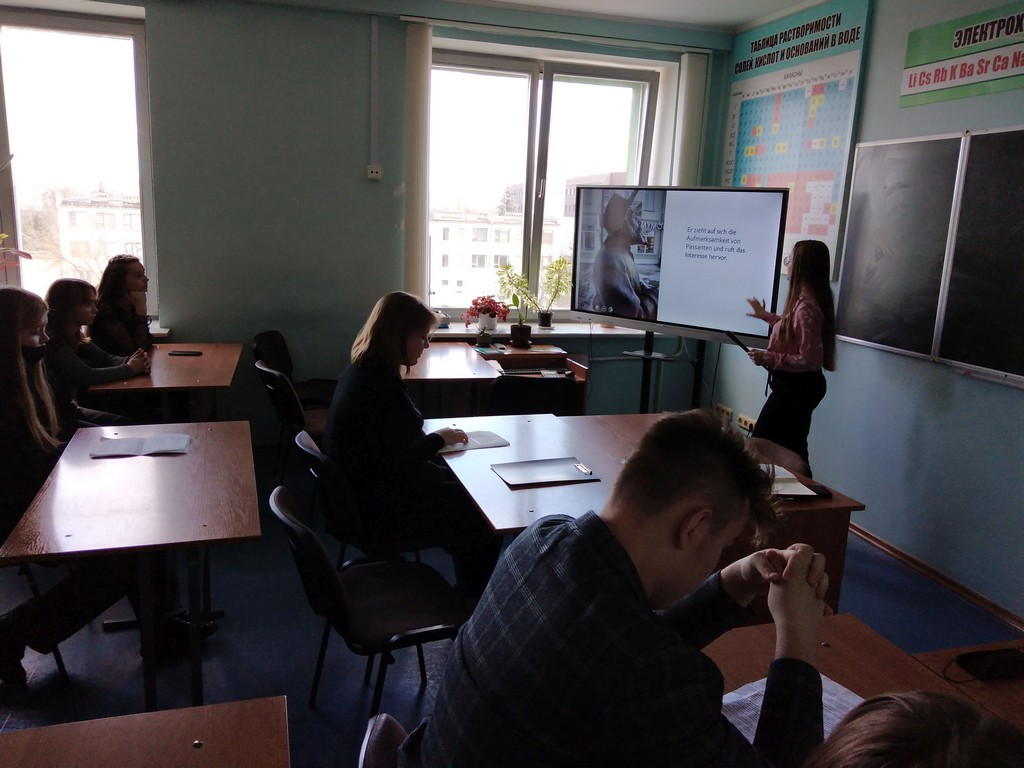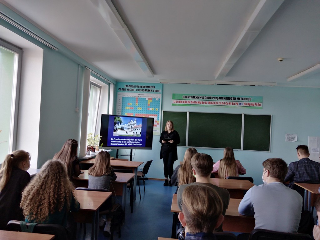 В лицее прошла презентация проекта «Виртуальный Пинск» на немецком и русском языках. Проект разработан учащимися 11 классов, которые изучают немецкий язык, и предназначен для гостей из немецкоговорящих стран. Идеи ребят вызвали живой интерес у слушателей. Команда разработчиков (Горгун Алена, Завадская Виктория, Кривчук Егор, Синькевич София, Скрипник Виктория) пригласила к сотрудничеству учащихся 10 классов и продолжению проекта для гостей Пинска под руководством учителя немецкого языка Дыдышко Раисы Ивановны.
