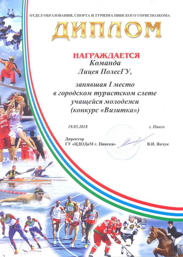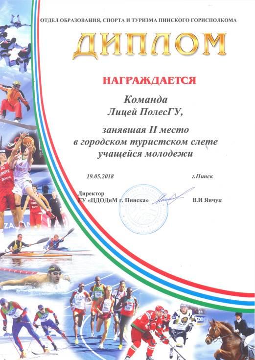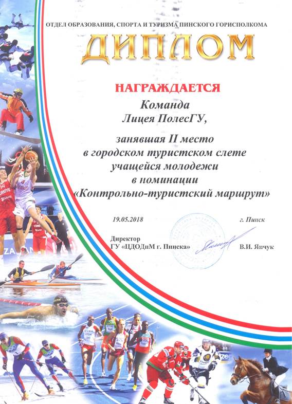 Команда лицея отмечена грамотами в трех видах спортивных соревнований: «Визитка» - 1 место, «Ориентирование» - 1 место, «Контрольно-туристический маршрут» - 2 место. По результатам всех видов соревнований команда лицея заняла 2 место.