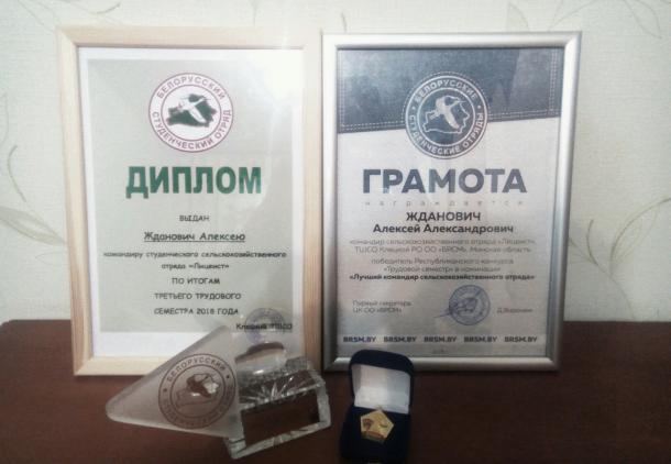 19 февраля 2019 года в Национальной библиотеке Беларуси состоялся Республиканский слёт студенческих отрядов «Молодость. Труд. Романтика», на котором по итогам 3-го трудового семестра студент факультета организации здорового образа, группы 17 СПД-1 Жданович Алексей был признан лучшим командиром сельскохозяйственного отряда Беларуси за 2018 год.