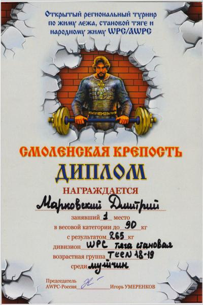 11 апреля в городе Смоленске состоялся турнир «Смоленская Крепость» AWPC-WPC. Соревнования проходили в нескольких категориях: жим лёжа, становая тяга и народный жим.