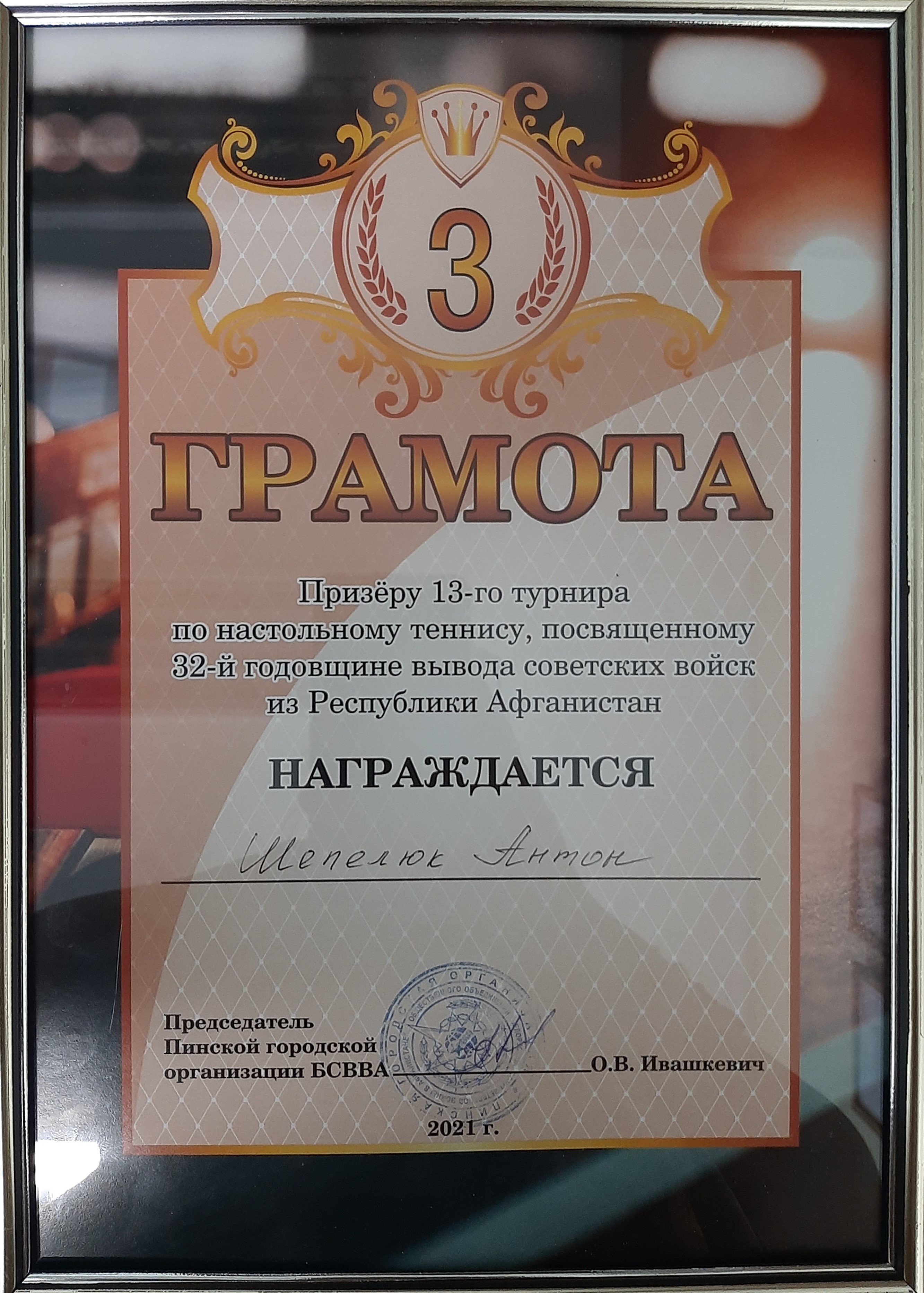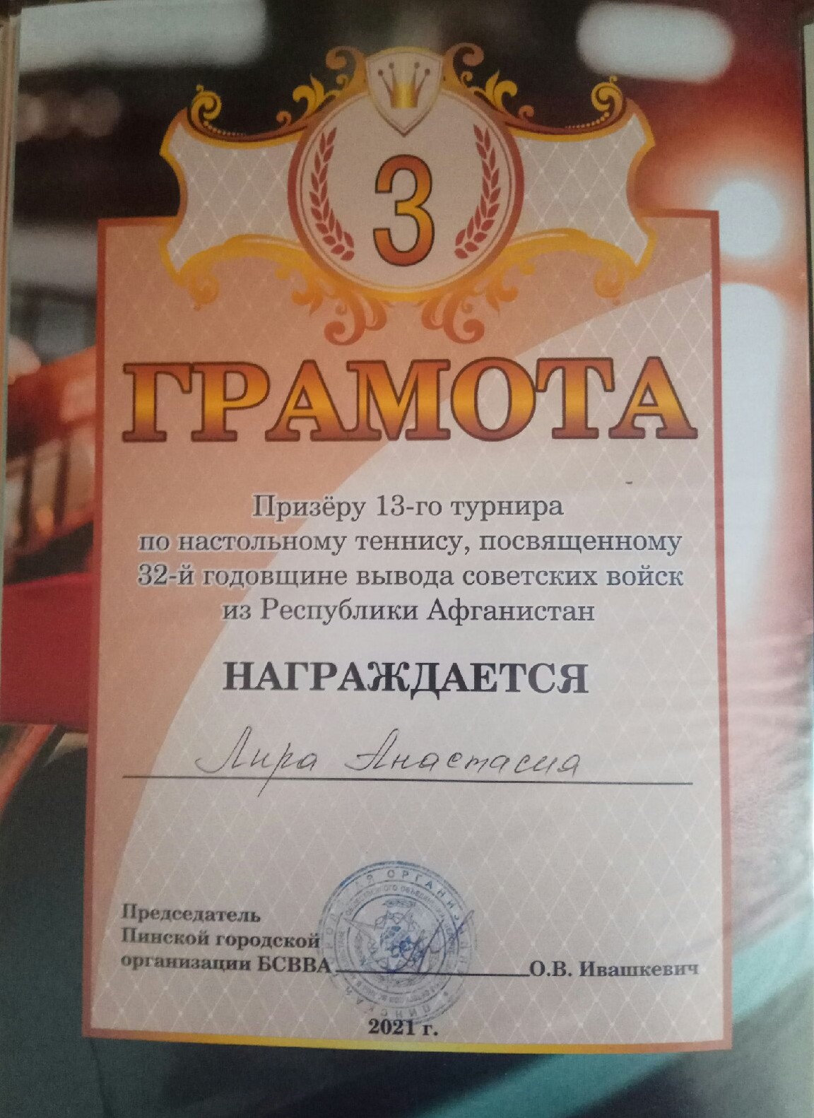 13 февраля в ГУО «СШ №18 г.Пинска» прошел турнир по настольному теннису среди учащихся учреждений общего среднего образования г.Пинска, а также ветеранов боевых действий на территории других государств, посвященный Дню памяти погибших и 32-летию вывода ограниченного контингента советских войск из Республики Афганистан.
