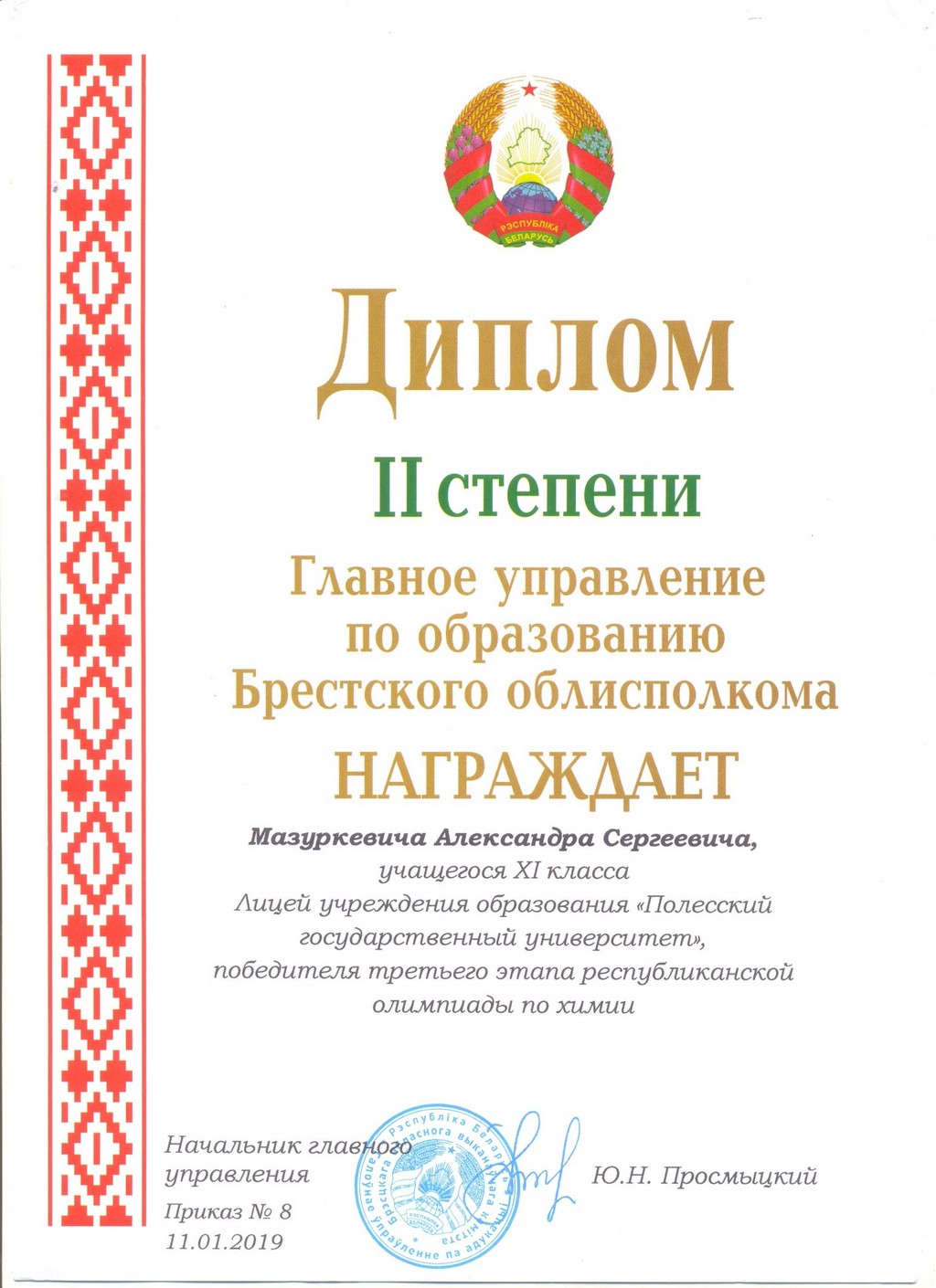 | Мазуркевич Александр, 11”Б“ | химия | диплом II степени | Андрухович Т.В. |